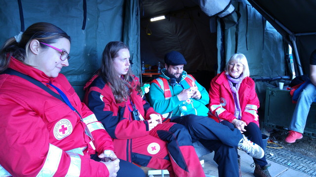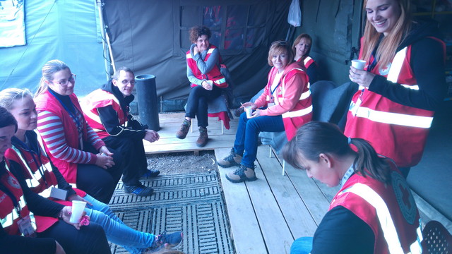 U vremenu dežurstava koje je bilo 12 sati ,od 8-20 događanja su bila različita. Oko vas se odvija svojevrsna ljudska drama i ma koliko vam bilo teško slušati prevoditelje o potrebama i gledati ta mala bića kako trčkaraju u neadekvatnoj odjeći ,nedovoljno sita pri dolasku, iz njih zrači nepopravljivi optimizam,oni se zaigraju kao da su na dječjem igralištu ako im pružite šansu i s njima zaigrate loptom ili pravite loptice od sapuna. Zahvali su vam za svaki osmjeh,zagrljaj,za slane štapiće koje smo im dijelili. Na kraju u šatoru-igraonici dobijete za uzvrat dječji crtež vaze sa cvijećem i malim srcima,što vas doslovno raspameti.