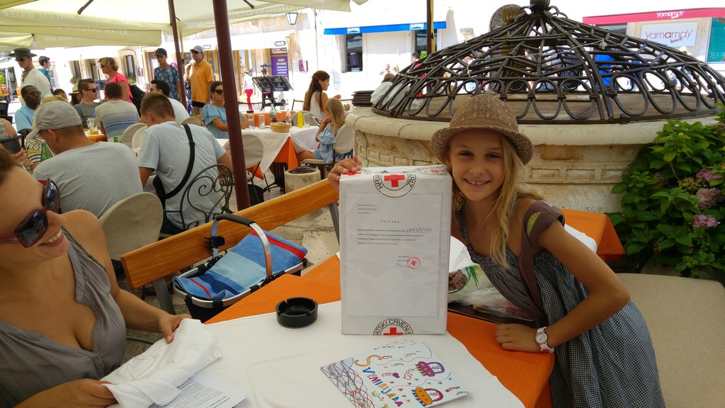 NAŠ VELIKI HUMANIST I PRIJATELJ,KRISTIJAN UGRINA-KIKI, GLUMAC KOJI VEĆ GODINAMA UČI DJECU OTOKA HVARA VJEŠTINAMA GLUME, DRUŽENJA ,DIJELJENJA I POMAGANJA I OVE JE GODINE SVE ŠTO SE PRIKUPILO NA NASTUPIMA ( A TO JE BIO DOBROVOLJNI DOPRINOS ) DONIRAO CRVENOM KRIŽU HVAR ZA POTREBITE. DONACIJU, ZAJEDNO S DJEČJIM EDUKATIVNIM SLIKOVNICAMA, ON I NJEGOVA PRELIJEPA KĆER, URUČILI SU TETAMA IZ CRVENOG KRIŽA KOJE SU KUNE PREBROJILE. BILO JE 2.140,00 KN KOJE SU SE UPLATILE NA FINU.SREDSTVA SU ZATIM TRANSFERIRANA DJEČAKU TINU IZ JELSE. HVALA IM ZA DOBROTU, A GOSPODINU KIKIJU POSEBNO ZA NASTOJANJE DA DJECI OD MALIH NOGU USADI PLEMENITE I HUMANE POSTULATE ZA BUDUĆNOST.