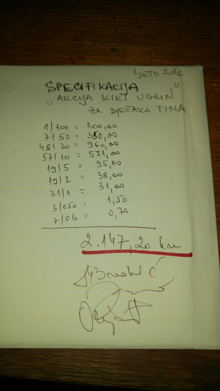 U prilogu je Izvještaj njegovog rada ovog ljeta pa prosudite sami kako je financijski nagrađen rad na tri destinacije ( Jelsa,Stg i Bol) njegov i djece kroz dobrovoljni doprinos. Iznos zarađen je 2.14,20 kn.