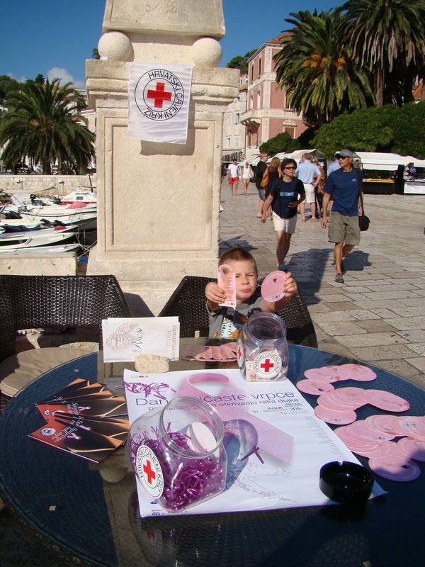odredila da datum obilježavanja bude 01.listopada 2016. /subota/,odlučeno je da se događaj obilježi u petak dan prije ,u Starom Gradu i Hvaru. To je bio pun pogodak jer su aktivistice Crvenog križa, ružičaste vrpce prodavale na trgovima koji su još puni gostiju zahvaljujući babljem ljetu. U Starome Gradu je ovih dana u tijeku susret i razmjena iskustava djelatnika dječjih vrtića pod nazivom “Baštinom za baštinu”,tako da nije nedostajalo zainteresiranih koji su dali puno podršku ovoj plemenitoj akciji. Posebno su se istakle Margita,Gabrijela, Lidija, Jasminka,Marija B.Linda,Andrea V,Andreja R,Leana,Pavla, Dragana,Sanja, Katarina,Tomo.