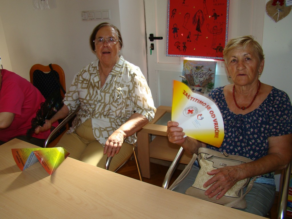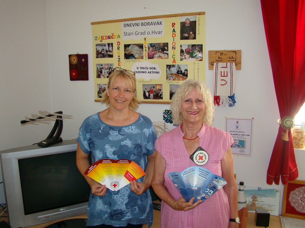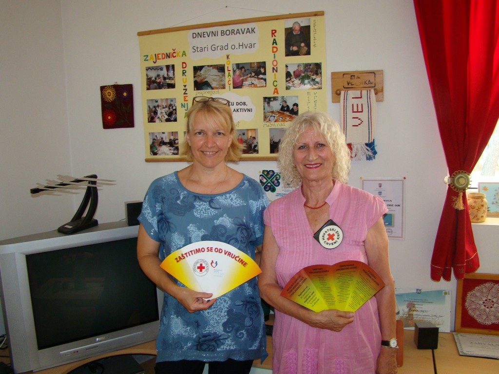 Nastavljena je dobra suradnja s članicama Dnevnog boravka u Starome Gradu i predstavnica Crvenog križa Hvar. Zbog velikih vrućina korisnice se manje kreću i odlaze kod liječnika pa je to bila prilika da voditeljica Zdravstvenog odjela CK Hvar, Olja Budrović ode k njima. Cilj je bio prekontrolirati razinu šećera u krvi i tlaka . Također je održana kratka edukacija kako se zaštititi od velikih vrućina,edukaciju koju inače provodi HCK sa ciljem zaštite stanovništva posebno osoba treće dobi.