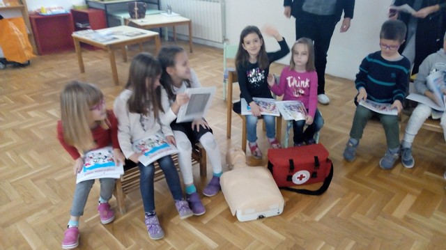 Crveni križ otoka Hvara u suradnji sa predškolskim ustanovama provodi edukaciju upoznavanja djece s osnovama prve pomoći.Tako su voditeljica zdravstvenih programa CK Hvar Olja Budrović i stručna suradnica CK Hvar dr.Andrea Anić-Matić posjetili predškolce DV „ Vanđela Božitković“. Svako dijete je od CK Hvar na poklon dobilo slikovnicu „Na putu do škole“ i bojnaku „Savjeti mede Jurice“,koja donosi korisne savjete ,kako bi naučili postupati u slučaju nezgode ili nesreće i tako zaštitili sebe i svoje zdravlje. Dr.Andrea Anić-Matić je djeci kroz nekoliko praktičnih primjera pokazala same osnove prve pomoći, kako postupiti u slučaju nezgode i koji broj nazvati za pomoć i tako im približila važnost pribranosti i pomaganja. Djeca su aktivno i sa zanimanjem sudjelovala u radionici.Ovom zanimljivom i korisnom edukacijom započeo je ciklus radionica u DV otoka Hvara s ciljem da se vrtičkoj djeci na zanimljiv način,kroz igru,prezentira važnost pružanja prve pomoći u svakodnevnom životu.