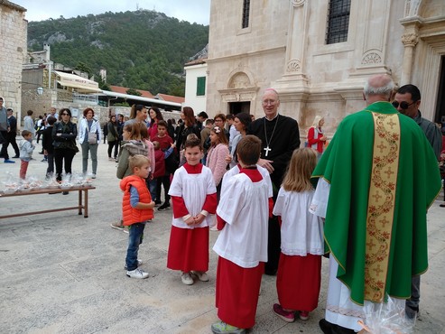 U organizaciji udruge Kapja jubavi, Crvenog križa,Župnog ureda i Srednje škole, u Hvaru je organizirana prodajna izložba plodova zemlje. Kao i svake godine i ove su zahvalni građani priredili razne uradke poput kolača,mermelade,meda,kapara i sl. koji su se prodavali na trgu ispred katedrale Sv. Stjepana,u nedjelju 28.10.2018.nakon jutarne mise. Aktivisti spomenutih udruga su s učenicima SŠ Hvar prodavali ponuđeno kada je prikupljeno 2.500,00 kn. Plodove zemlje je blagoslovio biskup u miru, monsinjor Slobodan Štambuk uz potporu župnika don Milija Plenkovića. Organizatori su odlučili da se prikupljena financijska sredstva rasporede na dva dijela, 1.500,00 kn udruzi Europa Donna za kupnju aparata za jednokratno zračenje,a 1.000,00 kn udruzi Krijesnice iz Zagreba koja okuplja roditelje djece bolesnih od karcinoma. Hvala svima koji su doprinjeli uspješnosti ove akcije, a tko je najviše doprinio znaju najbolje sami organizatori.