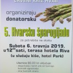 Dana 6.travnja 2019.godine u Hvaru je organizirana peta po redu akcija ŠPAROGIJADA , u organizaciji LIONS KLUBA otoka Hvara i uz potporu Crvenog križa.Događaj se odvijao ispred hotela Riva,koji je bio okupan suncem i time stvarao prekrasnu atmosferu za sudionike Šparogijede,kao i gošću guvernericu Sanju Paprenjak.Uoči obilježavanja Dana zdravlja ovo je bio pravi primjer konzumiranja zdrave hrane. Za naglasiti je da je svaka šparogijada bila humanitarnog karaktera. Šparoge je osigurao Damir Carić koji tu deliciju i uzgaja,a svi prisutni članovi Lionsa i aktivisti Crvenog križa bili su u funkciji ugoditi gostima. Ono što se prikupilo,iznos od 7.830,00 kn, namijenjeno je socijalno ugroženoj obitelji koja ima bolesnog mladića. To je ono što izaziva divljenje i ponos. Hvala puno svima koji razmišljaju o potrebitima, a iznos će sutra biti uplaćen na adresu našeg otočanina da im nadolazeći blagdani budu makar malo ugodniji i blagoslovljeni. Hvala članovima Lions kluba Hvar i svim sudionicima, do neke nove akcije.