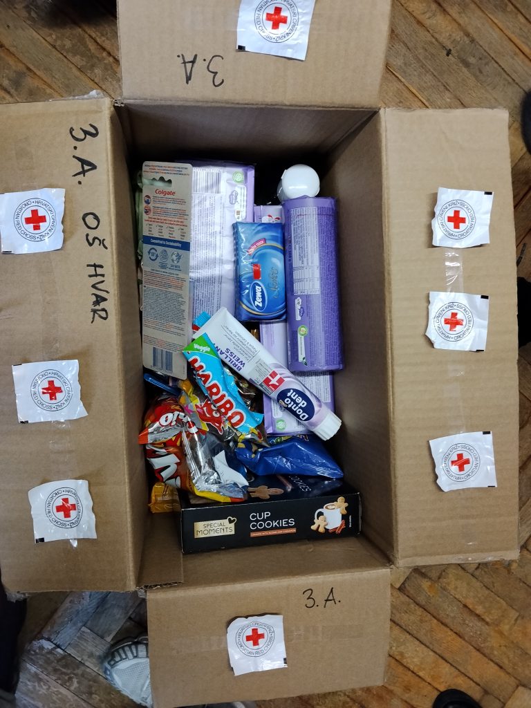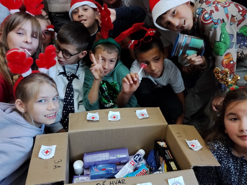 Djeca 3.a razreda Osnovne škole Hvar, zajedno sa svojom učiteljicom, još su jednom pokazala da prava vrijednost blagdana nije u primanju, već u darivanju. S puno truda i srca prikupili su slatkiše, bombone i higijenske potrepštine koji će razveseliti obitelji s djecom na otoku Hvaru. Crveni križ s ponosom se uključio u ovu lijepu priču solidarnosti i zajedništva, a ovakve akcije podsjećaju nas koliko su male ruke sposobne učiniti velika djela. Posebno zahvaljujemo učiteljici 3.a razreda ,Ivani Visković,koja kontinuirano podržava rad Crvenog križa i uvijek se rado odaziva našim humanitarnim akcijama, prenoseći djeci najvažnije vrijednosti – brigu za druge, empatiju i humanost. Hvala vam što zajedno gradimo zajednicu u kojoj je darivanje način života.