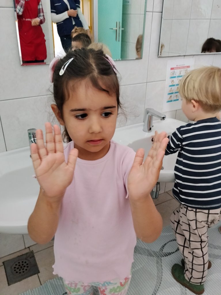 Nakon pokusa djeca su odmah primijenila naučeno te smo zajedno uvježbali pravilno pranje ruku i ponovili sve važne korake.